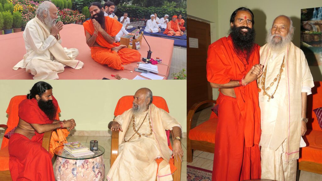 देवभूमि उत्तराखंड में दो आध्यात्मिक पुरुषों की मुलाकात देखने को मिली। यहां एक साथ, एक मंच पर साधना के सबसे परिचायक सद्गुरु स्वामी कृष्णानंद जी महाराज और योग के सबसे परिचायक योग गुरु स्वामी रामदेव बैठे हुए दिखे। यह बैठकी हरिद्वार स्थित पतंजलि योग ग्राम में हुई, जहां योग दिवस के उपलक्ष्य में योग के माध्यम से विश्व स्वास्थ्य के लिए आह्वान किया गया है। इस दौरान सद्गुरु धाम ब्रदीनाथ के महात्मा बिनोदानंद स्वामी भी मौजूद रहें।